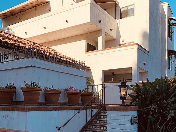 A decorative tile staircase welcomes you to the main level courtyard terrace with its extensive use of terracotta tile, lush tropical landscaping, verandas, multilevel planters and fountain.