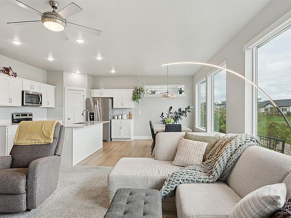 Once you step inside this beautiful 4 bd 3 bathroom ranch home and see how airy, bright and beautiful it is you will want it for your own! Living room offers a wall full of huge windows-with automatic blinds. Spacious living room with electric fireplace. Open to a wonderful dining area with transom window and spacious kitchen. You will definitely want to check out this extra deep pantry-rare find! Great primary bedroom with large window and transom as well. Great walk-in closet attached to the beautiful bathroom! Main floor laundry for convenience. 2nd bedroom and mud area complete the main floor. Lower level with spacious family room, 2 more bedrooms, full bath and still generous amount of storage! 2 car attached garage. Outside you will find a covered deck to enjoy and beautiful landscaping! Great location, close to shopping, groceries, walking paths, parks, frisbee golf and so much more!