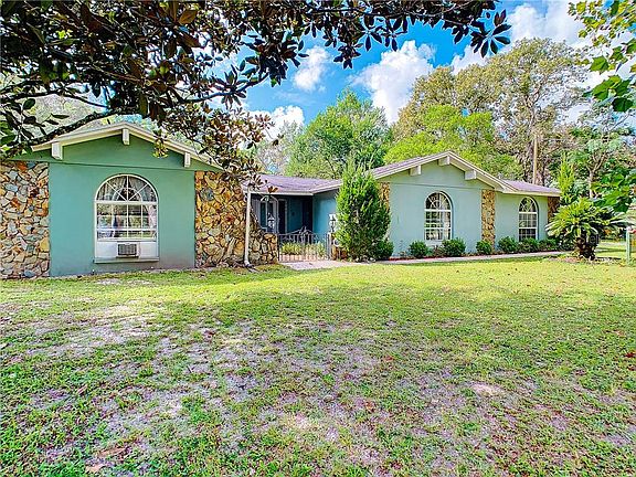 Country living at its finest! This 4 bedroom, 3 bath pool home sits on gorgeous 1.2 acres. Easy in-law suite set up. Beautiful features of this home include: screen front porch, double door entry, spacious sunk-in living room, beautiful stone wood fireplace in family room, updated kitchen with island, newer windows throughout most of the home, newer laminate flooring, updated bathrooms, inside utilities. Enjoy relaxing in your screen enclosed lanai as you watch the beauty of nature around you or enjoy the comfort of your beautiful diamond brite pool...creepy crawler stays. Huge 35x20 shed/workshop (Large enough to park a car) equipped w/ electric and wall AC, RV Pad with electric and septic, additional 10x18 storage building. Home is on a well so no water bill, drain field replaced in 2018 (per seller). SELLERS WILL REPLACE THE ROOF AT THE TIME OF CLOSING WITH ACCEPTED OFFER. W/D DO NOT CONVEY. Conveniently located close to Suncoast Parkway, shopping and restaurants. Check out the virtual tour.SOLD AS IS FOR SELLER'S CONVENIENCE. Buyer/agent to verify room sizes and shed sizes. Washer/Dryer do not convey.