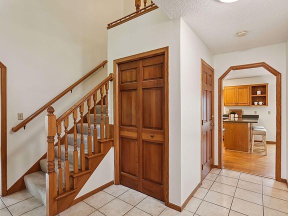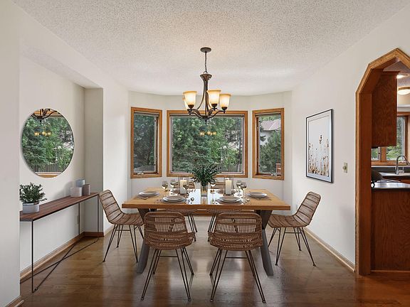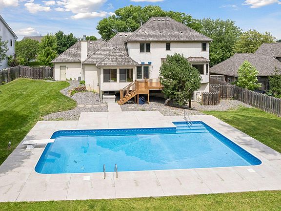 Welcome to this charming two-story home with an amazing backyard oasis, perfect for spring and summer fun! Enjoy the 18' x 36' pool, spacious no-maintenance deck, three-season porch, and lovely patio. Inside you'll love the soaring entryway that leads to living and dining rooms with oak wood floors. The kitchen features stainless steel appliances, solid surface counters, oak cabinets, and backyard views. The kitchen opens to an informal dining area and family room - perfect for family and friends. There's also a convenient, main-floor laundry and mud room . Upstairs, the primary suite offers a private bath and walk-in closet, plus two junior bedrooms and a bath. The walkout lower level has a large amusement room and a flex space, perfect for a den, office, or gym, along with a fourth bedroom and 3/4 bath. Crosswinds Park is just steps away with a playground, basketball, and baseball. Enjoy great access to local parks, shops, and an easy commute.