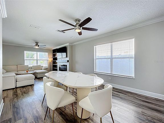 Welcome to Winter Garden! This 3-bedroom, 2.5-bath home features an open floor plan with luxury vinyl floors, a modern kitchen with quartz countertops and stainless steel appliances, and a cozy family room with built-ins and LED fireplace. Upstairs offers a versatile loft and split bedrooms for privacy. Enjoy a screened lanai, fenced backyard, and a garage with epoxy flooring, workbench, shelving, and 220-amp EV outlet. Walking distance to Whispering Oaks Elementary and Publix, minutes to Winter Garden Village, Downtown Winter Garden, and Plant Street. Less than 30 minutes to Disney and Universal. Community includes a newly renovated playground.