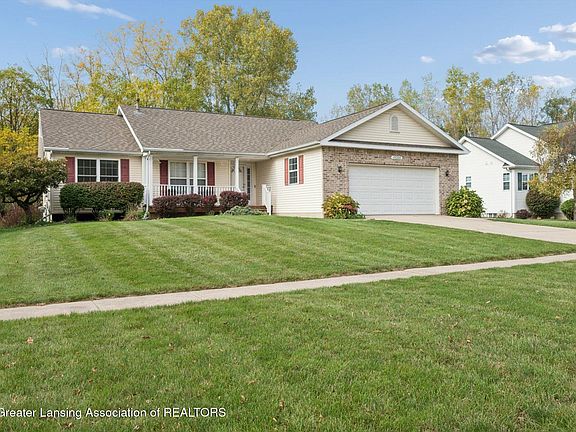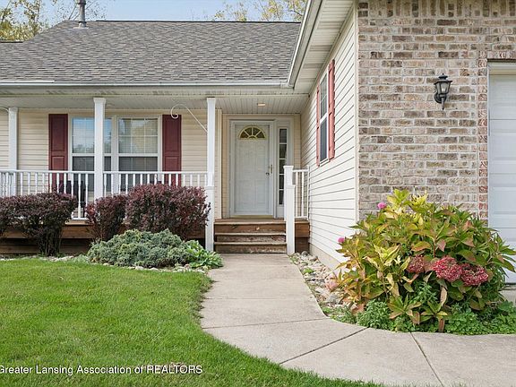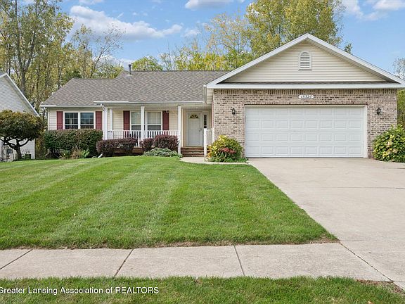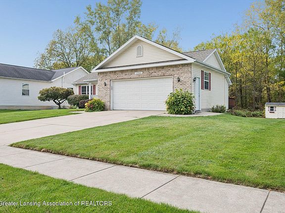 Welcome home to this move-in ready ranch tucked away on a large lot with a peaceful wooded backdrop! You'll love the quiet setting and the stylish updates throughout. The kitchen is a total standout — freshly updated with granite countertops, stainless steel appliances which include a Samsung gas stove, Bosch dishwasher, and a fancy fridge with all the bells and whistles. There's even a huge pantry for all your storage needs. Luxury vinyl plank flooring runs through most of the main level, paired with new light fixtures that give everything a modern feel. The open great room has tons of natural light and a cozy gas fireplace — perfect for relaxing nights in. Step out the slider to your back deck and enjoy the private, wooded view. The backyard also features a firepit and a shed for ext extra storage. Out front, there's a cute porch that's ideal for morning coffee or chatting with the neighbors. The main floor includes a dedicated office with French doors, a roomy primary suite with a walk-in closet, and another bedroom with an updated full bath nearby. Downstairs, the finished lower level is made for fun — a big rec room with a built-in bar, complete with a kegerator, fridge, sink, and Samsung TV. There's also a bedroom with egress windows and a full bath, making it perfect for guests. Other updates you'll appreciate: a newer furnace, hot water heater, LG washer and dryer, and a 2-car garage with built-in storage cabinets. And, you can't beat the low, Dewitt Twp. Taxes! If you're looking for a home that's stylish, comfortable, and move-in ready with a private wooded feel — 15326 Boichot checks all the boxes!