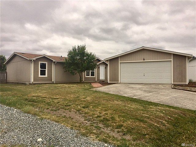 New carpet just installed in this 3 bedroom 2 bath Manufactured home. On large fully fenced lot with deck and two car detached garage. Home has great room open concept with split bedroom floor plan.