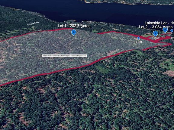 Edinburg NY - Fabulous opportunity for those who desire peace, solitude and nature! Rustic luxury on 202.7 acres of unspoiled wilderness land with a 3-4BR/3BA luxury log cabin of 2591 sq ft with attached 2 car garage. Two streams meander through this major parcel of land with valuable timber and every sort of wildlife you can imagine in the Adirondacks. A dream home get-away with wood floors, stone wood burning fireplace, a fully fenced rear yard ideal for pets, inground fiberglass pool. There is a gourmet kitchen w/SS appliances & granite counters. The full basement offers add'l living space opportunity. An amazing 37' x 43' custom metal barn with its own electric service can hold all the cars, toys, boats, 4-wheelers or whatever you desire! The standby generator keeps you safe during winter storms. This is the quintessential Adirondack log cabin with soaring vaulted ceilings, exposed beams, built-ins, two balconies, three NEW baths. The house is set 831' back from the road just across from the Great Sacandaga Lake. For those that dream of lake access there is an additional 3 acre parcel as a potential building site with a 12' deeded access to the Great Sacandaga including a mooring and dock! The lakeside parcel can be included for a package price of $995K.
