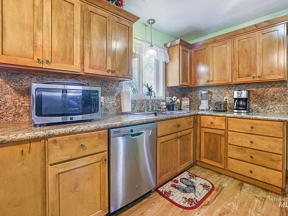 Welcome to 1533 9th Avenue E in Gooding! This 4-bed, 1.5-bath single level home spans 2,002 sq ft. Inside, find a welcoming living room, kitchen, and spacious family room with cozy bookshelves and a gas fireplace. Convenience is key with an attached 1-car garage and leaf guard gutters. Outdoor delights await in the expansive backyard; Imagine lazy afternoons under the pergola on the back deck/tinkering in the storage shed; tall, mature shade trees adorn the property, providing serene seclusion, while the backyard boasts a bounty of fruit trees; 2 apricot, 2 apple, and 2 pear trees. The 1.838-acre property includes a pasture, perfect for livestock; Horses, Cows, Chickens, or gardening. Water rights include 1.85 shares of BWCC water delivered through the Little Wood Villa Water Users Assoc. Plenty of parking AND RV parking in the front of the home. Handicap accessible home in a quiet neighborhood. Don't miss this rare opportunity - contact us or your favorite realtor for a private tour today!