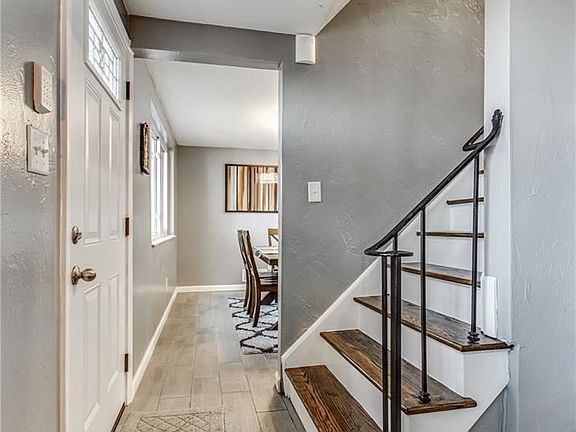 TWO STORY BRICK HOME HAS BEEN TASTEFULLY RENOVATED FROM TOP TO BOTTOM-ROOF 2019-TRENDY GOURMET KITCHEN WITH STAINLESS STEEL APPLIANCES=GAS STOVE, REFRIGERATOR, DISHWASHER AND MICROWAVE, LARGE CENTER ISLAND OPENS TO DINING WITH WHITE CABINETRY, GRAY QUARTZ COUNTERS AND WALKOUT FROM KITCHEN-GLEAMING HARDWOOD FLOORS ON SECOND LEVEL, NEW CERAMIC TILE PLANK FLOORING ON FIRST-TWO WALK IN CLOSETS ON SECOND-NEW BATH WITH DOUBLE BOWL VANITY AND TILE FLOORING & SHOWER-FINISHED LOWER LEVEL WITH GRAY TILE FLOORING IN GAME ROOM, LAUNDRY AND NEW BATH WITH OVERSIZED SHOWER-DETACHED GARAGE IS ON LOWER LEVEL-PRIVATE BACK DECK IS THE IDEAL RETREAT!!