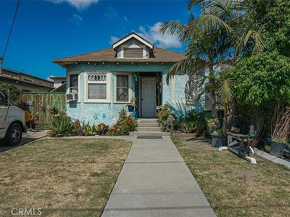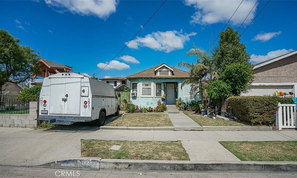 Charming 3-bedroom, 1-bathroom single-family home in South Los Angeles, featuring a vibrant teal blue exterior and an interior filled with potential. This 753 sqft home sits on a spacious 5,270 sqft LCR3YY zoned lot, perfect for future development or customization. Upon entering, you're welcomed by a quaint mini mud room with tile floors, leading into the living room and kitchen, both featuring warm wood floors. A unique walk-in closet is situated in the living room area, just across from the bedrooms, adding both functionality and storage space. The second bedroom includes a small walk-in closet, while all bedrooms are carpeted for added comfort. The bathroom is in decent condition but offers an opportunity for some tender loving care (TLC) to make it your own. The home also includes a detached garage, alley access, and ample street and driveway parking. Recent roof updates add to its appeal, and the large lot with LCR3YY zoning offers potential for expansion or redevelopment. Conveniently located near schools, parks, and local amenities, this property is perfect for investors or owner-users looking to maximize its potential.