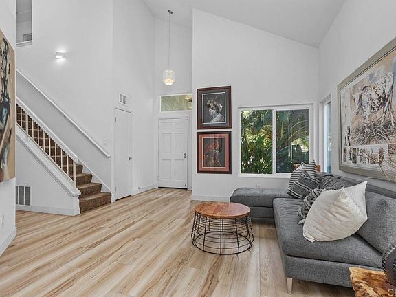 Welcome to The Cove, a sought-after gated community in the heart of Shadowridge and just 10 minutes from the beach! This charming three bedroom, three bath home has the perfect mix of comfort and style, starting with soaring vaulted ceilings and skylights that fill the living and dining areas with warm natural light. The brand-new gourmet kitchen is a true highlight, featuring quartz countertops, apron front sink, stainless steel appliances, and modern finishes. The kitchen opens into the family room, where a cozy fireplace creates the perfect gathering space. New luxury vinyl plank flooring runs throughout the downstairs, while upstairs the spacious primary suite offers vaulted ceilings and a private en-suite bath with dual sinks. Two additional bedrooms and a full bath complete the upper level. Smart upgrades include solar, an EV charger and brand-new dual pane windows for year-round efficiency. Outside, a peaceful wooded backyard with mature trees offers a quiet place to relax or entertain. As a resident of The Cove, you’ll enjoy the sparkling community pool, plus all that Shadowridge has to offer—parks, trails, shopping and golf just minutes away. Your Shadowridge retreat awaits!