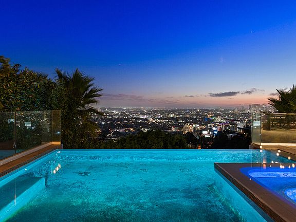 A Hollywood Hills Masterpiece with Unrivaled Views and Unmatched Luxury. Designed by Irving Philips, this architectural gem is perched on a private cul-de-sac above the iconic Chateau Marmont, offering sweeping vistas from Downtown LA to the Pacific Ocean. Seamlessly blending modern design with the natural beauty of its surroundings, this residence epitomizes California indoor-outdoor living with retractable doors, expansive terraces, and a stunning infinity-edge pool, where stunningsunsets are yours every evening from arguably the best seat in the Hills.The main level features an open-concept layout, ideal for entertaining, with a sleek outdoor kitchen,meticulously landscaped grounds, and a waterfall focal point. Upstairs, the luxurious primary suite occupies the entire top floor, complete with a captivating private balcony,spa-like bathroom, and panoramic views that redefine tranquility. Two additional en-suite bedrooms provide privacy and comfort for family or guests. State-of-the-art amenities include an iPad-controlled Smart Home system, Nest climate control, and comprehensive security. Designed for relaxation and entertainment, this property embodies Hollywood Hills glamour with every conceivable amenity at your fingertips.