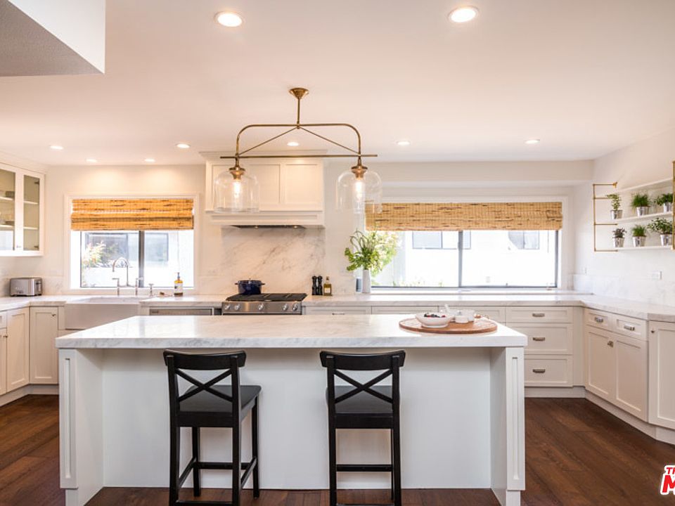 Masterfully designed spacious townhouse in verdant natural setting is unquestionably the work of a professional designer at the peak of her craft. This 2BR/2.5BA home was just extensively renovated, upgraded and reimagined with fine materials and an artful use of space. Wide plank wood flooring throughout, exposed beams, distinctive iron railings and designer lighting are just some of the custom details. An expanse of Calacatta marble is one of the many highlights of the gourmet center-island kitchen, which includes a custom coffee bar, farmhouse kitchen sink, polished nickel and aged brass fixtures, and custom lighting. The living room looks out on lush mountain and canyon views and is complemented by a custom Carrara marble fireplace. All baths have been redone, the master with cast-iron freestanding tub, frameless glass step-in shower and 2-sink marble vanity. Attached private 2-car garage. Sought-after location with community pool and spa.Truly a showplace!