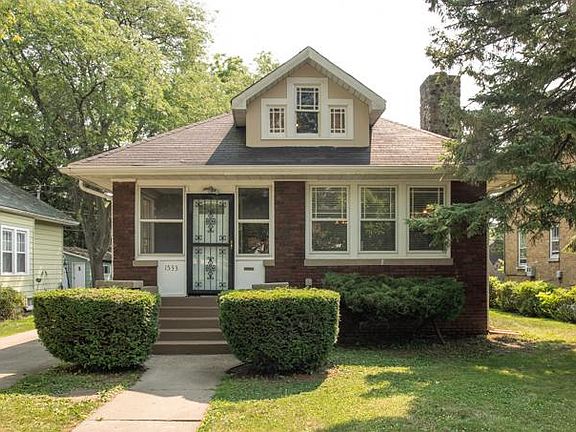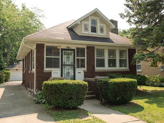 Super sharp brick bungalow, just adorable with front entry enclosed porch for summer relaxing, a spacious living room with beautiful brick fireplace flanked with light sconces, nice hardwood floors and plenty of windows here for sunshine! Arched entry leads to large formal dining room or could be home office, etc. - you decide! The kitchen offers a good amount of cabinet space, a spot for the refrigerator (probably was eating area originally), and don't miss that large pantry closet just past the back door. An enclosed back entry is good for weather efficiency and a nice spot to plop your coats, boots, etc. Two bedrooms, both with hardwood floors and a bath in between finishes the first floor. The basement is large, unfinished, but has many possibilities to finish off as you choose. The attic is a walk-up and could be a possible 3rd bedroom. A spacious 2 car detached garage, and a solid concrete driveway add to the value of this home. It shows great! Much of it was freshly painted, the floors are very nice, it is clean and ready to move in, so see it soon!