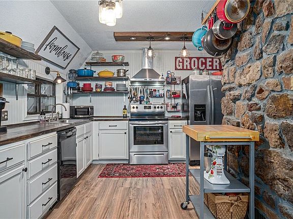 Beautiful 4 seasons panoramic views of the valley and hills and Frog Bayou area while having the peace of mind of a gated residential community. The unique chalet mountainous retreat will give you the feeling of being on a year round vacation. Total eletric, tri-level home with 4BR/2FB/2HB, large rock fireplace, updated kitchen, new flooring, two new doors, new paint, light fixtures, all duct work cleaned out, new roof, and $10k air purifier. Outside has two great decks to enjoy the views! A must see! SF per appraisal