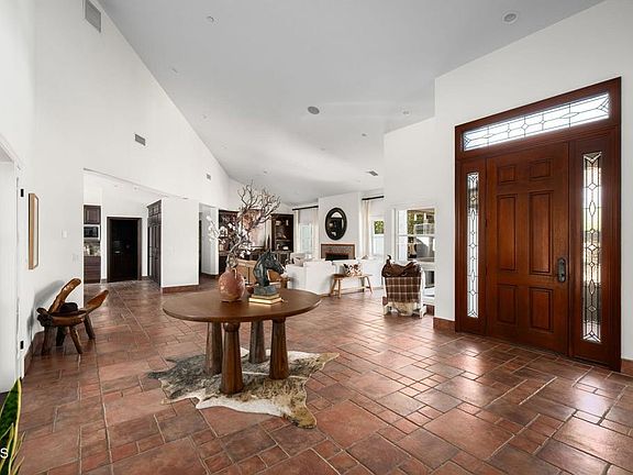 Exceptional Spanish Hacienda Equestrian Estate thoughtfully reimagined through a significant rebuild into a luxurious private retreat - crafted for effortless indoor-outdoor living, quiet luxury, and an ideal setting for both intimate gatherings and grand-scale entertaining. Beyond wrought iron doors, a private courtyard with a tranquil fountain sets the tone for the serenity and grandeur that await. Inside, a breathtaking great room is defined by soaring vaulted ceilings and sweeping sightlines that flow gracefully through the living, dining, and kitchen spaces. Oversized windows and French doors fill the interior with natural light and offer a harmonious indoor-outdoor living experience. At the heart of the home, a magazine-worthy chef's kitchen stuns with a grand center island, rich custom cabinetry, and dramatic earth-toned, veined single-slab counters and backsplash. A stunning row of transom-topped casement windows adds architectural interest and bathes the space in soft, ambient light. Created for the serious culinary enthusiast, the kitchen is equipped with a professional-grade Wolf range, full-size built-in refrigerator and freezer columns, dual-zone wine fridge, multiple sinks, and a generous walk-in butler's pantry. A pass-through window provides seamless service to the outdoor dining area--perfect for entertaining in style. Privately situated at the end of a light-filled corridor lined with French doors, the primary suite offers peaceful backyard views. Centered around a custom-tiled fireplace, the suite provides a quiet, comfortable retreat with space to lounge and unwind, and its own private outdoor access. The spa-inspired bath showcases a jetted soaking tub with serene views, a frameless walk-in shower with mosaic accents and built-in bench, and a custom vanity with natural stone countertops, ample storage, and a dedicated seating area. A spacious custom walk-in closet completes the suite. French doors throughout the home invite you to a sweeping covered veranda thoughtfully designed with multiple zones for open-air dining, relaxed lounging, and effortless entertaining - all overlooking the private backyard retreat. Equestrian amenities include a 1,400 sf, 5-stall barn with tack room and bathroom. Enjoy direct trail access to Griffith Park, nearby public riding arenas, close proximity to top schools, the Americana, and major studios.