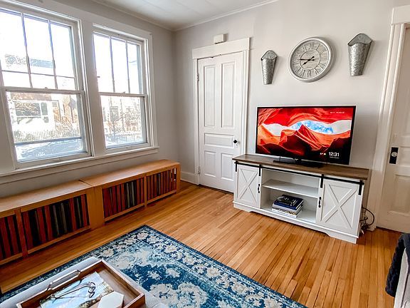This home is available now and offers easy street parking. Cats are welcome with no pet rent and no pet fees; no dogs, please. There is a $350 move-in fee per person in lieu of a security deposit, and a $40 application fee per applicant through Zillow. Tenants are responsible for gas, electric, and internet, with heat provided by radiators and cooling handled through window A/C units. A longer lease term is preferred.