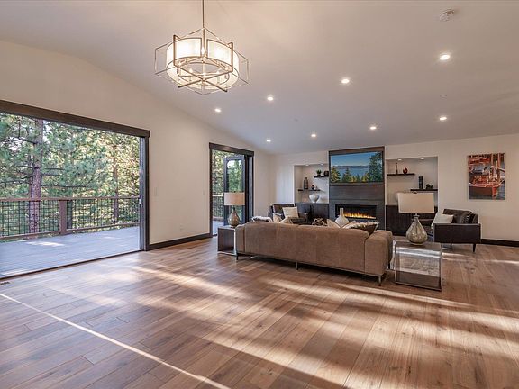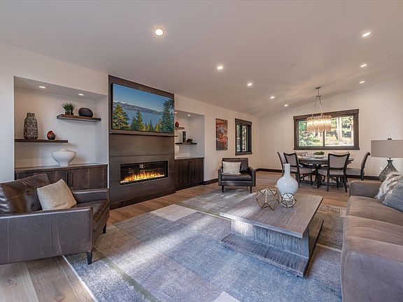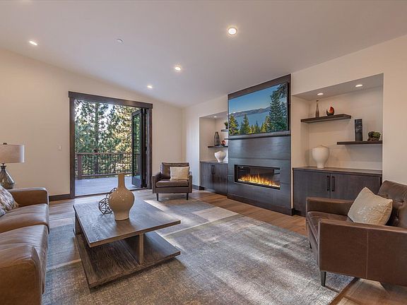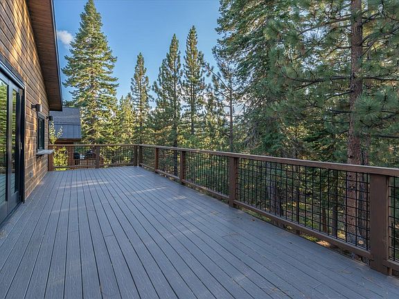 NEW and GORGEOUS! Welcome to this spectacular mountain modern retreat "'smart home" with fantastic spatial elements, large scale design, craftsman finishes and a wonderful flow! Enjoy the integrated living area with a chic great room highlighting a sophisticated gas fireplace, audio visual, huge glass sliders to the BIG upper deck, pretty mountain views (and alpenglow!) and a spacious dining area. Entertaining is a breeze with the state of the art chef's kitchen equipped with Monogram appliances, wine fridge, gorgeous center island, extensive use of granite, pantry, adjacent laundry room with plenty of storage and powder bath. You'll enjoy the custom lighting with its "smart home" package, bringing lovely ambiance year 'round. Just off the main living area, up a short flight of stairs, is a cozy alcove perfect for a lounge or remote office. This area leads to the primary suite with a stunning bath highlighting gorgeous finishes and large walk-in closet. Great for children, guests - or just having fun - the lower level offers a fantastic family room with a beverage bar and easy access to the covered , lower deck, ready for a future hot tub! A private, second suite plus two additional bedrooms with a large bathroom completes this level. Providing convenience, the large entry serves as mudroom and is located off the sizeable garage. Enjoy this beautiful home site, a flat driveway and private, forested setting. This property offers all the bells and whistles - including air conditioning! Just a short walk to Tahoe Donner's Nordic/Adventure Center and national forest trails, nature awaits! Sophisticated, well appointed and bringing pretty, perennial landscaping, here is the quality, new construction mountain property your family has been awaiting!