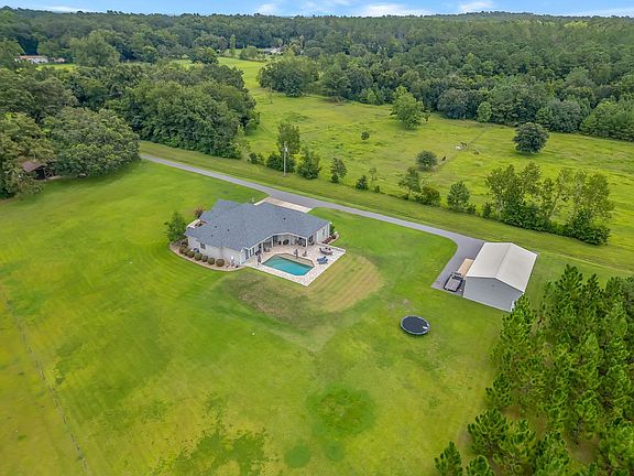 Remodeled 5BR/3.5BA estate with office, 3,358 sq ft of living space, a stunning custom pool, all on 10.28 fully fenced acres with private gated entry. Features include a 30x50/1500 sq ft metal outbuilding with dual 12x20 ft doors—ideal for an RV, boat, or workshop—and a separate barn perfect for hobbies or homesteading. Inside, enjoy the 2021 upgrades: new flooring, updated fixtures, and custom window coverings throughout. The spectacular great room is perfect for gatherings, and the chef’s kitchen shines with quartz counters, a large island with breakfast bar, high-end stainless appliances, and a generous dining area beneath a coffered beam ceiling. A cozy family room offers custom built-ins for added charm. The spacious primary suite opens to the pool deck and includes a spa-like bath with jetted tub, double vanity, and a custom shower with dual heads plus rain shower. Split plan includes two bedrooms with Jack & Jill bath, and two more sharing a hall bath. Out back, the gunite pool with sun shelf and tumbled stone patio completes the dream. This estate offers beauty, space, and function—a rare and remarkable find.