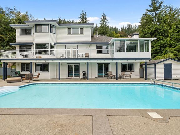 Renovated 4425 SF multi-generation home perfect for extended family. The 4 bed/3.5 bath main house features a formal living room, large kitchen, dining and family room leading to the generous South facing deck giving you access to the fully fenced yard, 3 beds upstairs featuring a primary bedroom with built in closets + ensuite bath, lower level features 1 bed,1 bath, workshop/storage and rec room next to the pool/patio. 2nd side of the house features 2 bed/1 bath, kitchen, dining, living room, family room with fireplace, 2 beds and 1 bath + Flex room all situated on 2 levels. Other features include an inground pool, fully fenced yard, triple garage with lots of exterior parking for all the toys.Next to the biking trails, 5 golf courses, 5 mins to the Pitt lake and 10 min to shopping.