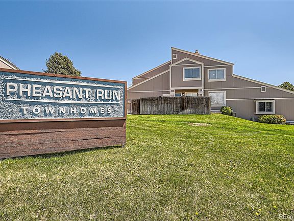 Wonderful like new end unit in Pheasant Run Community with no neighbors above or below you! Bonus-- an attached designated carport has a backdoor to walk in directly to your home and includes an added large storage area. Enjoy the private front patio and yard completely fenced with a covered porch - so perfect for morning coffee or to share with your pet. Amazing front patio storage as well! As you enter the home, you'll be greeted by a generously spacious open-concept floorplan with bright and spacious large windows and a cozy fireplace for cool nights. Fabulously updated kitchen with white cabinets, stainless appliances, granite countertops and an eat-in dining area for a large table. Located on the main floor is also an updated half bath and laundry with front load washer & dryer included. Beautiful new maintenance free floors and new carpet. Custom finishing touches throughout. Upstairs has two spacious bedrooms and a fully updated bath with double sinks and custom tile. Main bedroom is quite large with multiple closet areas and privacy doors. The second bedroom has a great closet organizer and ample room. The complex has a community pool, surrounded by grassy areas and plenty of additional parking for guests. Perfect location in Cherry Creek School district with easy access to scenic parks like Cherry Creek State Park and Reservoir, restaurants, shopping, RTD, highway 225, and DTC.