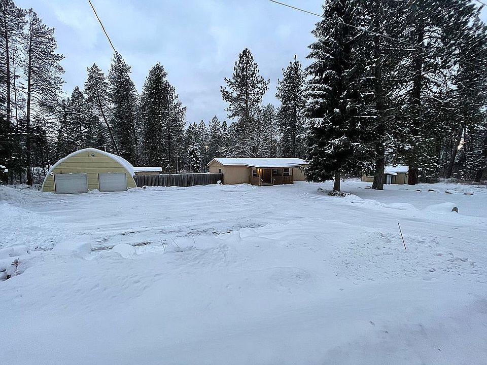 LOCATION!! Beautifully updated home “Set as real property” on 5 acres with large Quonset Hut shop all within a 10 minute drive of Rathdrum and Coeur d'Alene. This home features a new roof, new interior paint, trim, carpet, remodeled bathroom, and beautiful large windows in every room to look out onto your property. Watch the deer and moose from the back porch and as this home is out of city limits. Also has a separate building great for a she shed, playhouse, ect. Home is on its own septic which was pumped this year. It is not often a home on acreage this close to town becomes available!