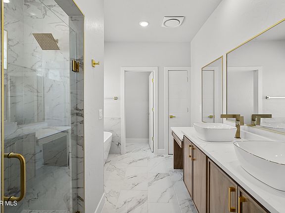 This elegant 2,160 sq ft home features 4 bedrooms and 3 full baths with 12 ft living room ceilings and an open, modern layout. The kitchen offers quartz countertops, shaker cabinets, ZLINE appliances, elegant light fixtures, and upgraded hardware. Enjoy a built-in wet bar and a luxurious primary suite with a garden tub and designer finishes. Energy-efficient features include wall insulation, high-performance windows, and a durable roof. Step outside to a beautiful outdoor kitchen—perfect for entertaining. Experience the custom details, craftsmanship, and modern elegance that define every Villas Custom Home.