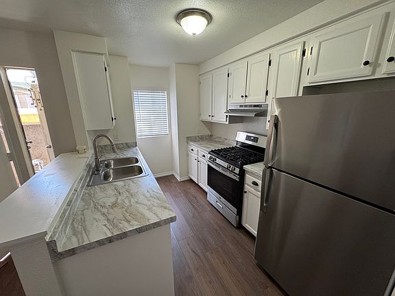 Single story condo located on first floor with 2 bedrooms and 2 bath. Tandem 2 car carport parking. New interior paint, laminate flooring, Central air, New kitchen appliances, gated community. Property located near freeways, schools and public transportation Owner pays for water and trash. Tenants pays for gas and electric. No smoking in the property. One year lease with month to month afterwards