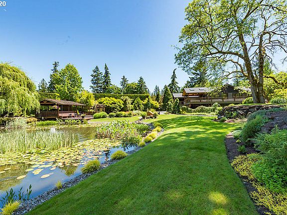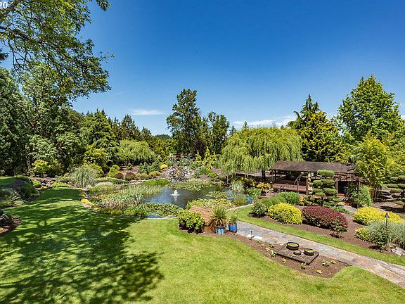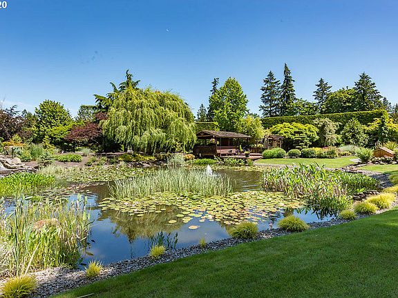 Unique remodeled home on pristine manicured grounds. Stunning views of pond/waterfall/landscape from living spaces & multiple outdoor covered decks. High-end appliances, over-sized leather granite island w/ raised bar. Approx. 2000' private clear creek frontage w/ park-like setting. Multiple expansive outbuildings w/ paved driveway. Private/Gorgeous/Relaxing/Work from home/Vacation all within 25 minutes of PDX. Check out all virtual tour links for more information & pictures. Buyer verify uses.
