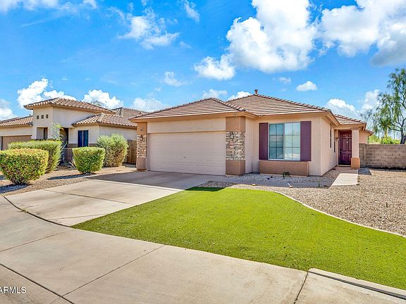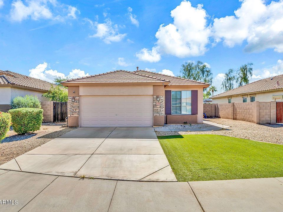 Start the year in your dream Goodyear home! This beautiful 3-bedroom, 2-bath residence offers great curb appeal with a turf front yard, solar, and fresh neutral tones throughout. The kitchen impresses with granite countertops and plenty of style and function. Step outside to your private oasis featuring a sparkling pool, view fencing with scenic surroundings, and a built-in grill with granite countertop to match the kitchen. Roomy Primary Suite with walk-in closet, dual vanity and soaking tub and separate shower. Just 0.2 miles from Centerra Mirage STEM Academy and close to shopping, dining, and the I-10 freeway, this home perfectly blends comfort, convenience, and charm. Don't miss your chance to make it yours!