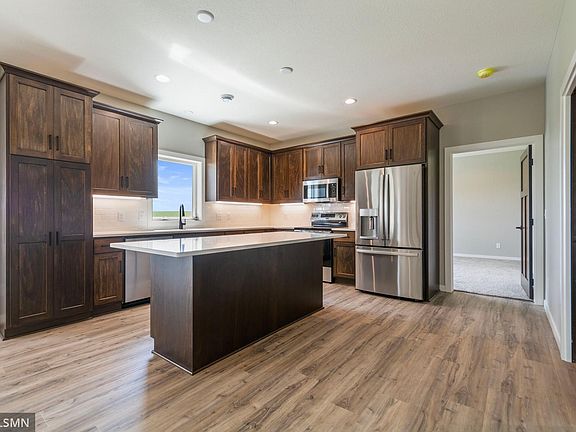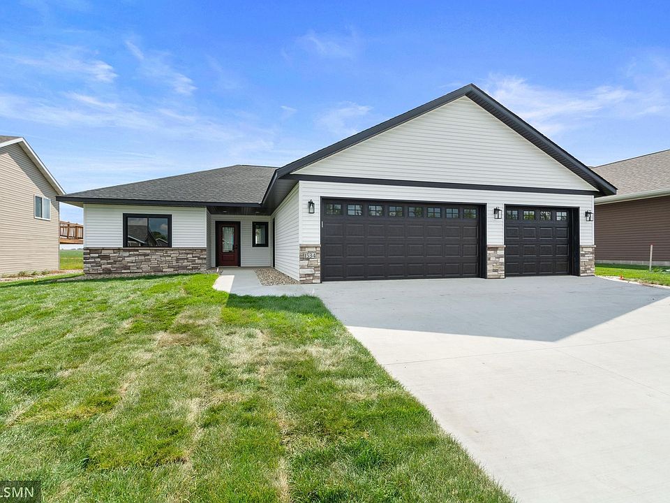 Move in ready slab on grade home features 9' ceilings, Custom Poplar cabinetry, LVT flooring, Quartz countertops, 3 panel doors, sprinkler system, and oversized finished garage with floor drain.