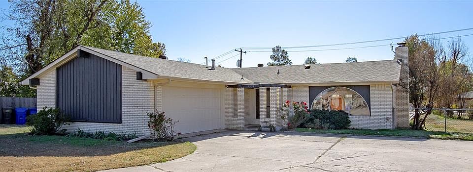 Welcome to 1534 Ashley CIR, Norman, OK 73069! Nestled into a quiet cul-de-sac, this single-family residence offers an expansive backyard. Built in 1973, this property welcomes you in with its Mediterranean-style courtyard. Inside you'll find 3 bedrooms, 2 bathrooms providing ample space for rest and relaxation. The primary bedroom and ensuite create a getaway complete with a private door connection out to a spacious covered patio. The efficient kitchen, in its original design places everything at your fingertips. A serving counter and passthrough to the dining area-surrounded by windows over looking the backyard-enhance the homes connectivity. Gather around the gas fireplace in the living room featuring high ceilings with wooden beam details. The unique arched front window floods the room with natural light. Additional highlights include, an extra- wide driveway, two car garage, with built in storage, work bench, plus a large storage shed in the backyard. This Norman residence is brimming with potential and waiting to be to be transformed with your personal touches!
