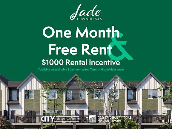 Now renting brand new, 2 & 3 bedroom townhomes in Airdrie, Alberta! For a limited time get 1 Month Free Rent & $1000 Rental Incentive on 3 bedroom homes!