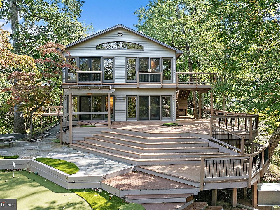 Nestled into the tree tops off a private drive in highly sought after Winchester on the Severn, this mid century raised rancher will check all your boxes. From the moment you pull up the private drive to the home, you are immediately at ease. Step out of the car to the sounds of birds and the rustle of the trees. You will feel as though you have escaped it all, yet you are right in the heart of Winchester, a quick drive from Historic Downtown Annapolis and a stones throw to the famed B&A trail. As you enter the front walk, you will be immediately struck by the quality of craftsmanship and materials on the exterior of the home. Once inside, the rich wood beams, wood trim and floors strike a dramatic combination with the soaring ceilings. The abundant windows and doors leading out to the sunroom will ensure that the beauty of the natural surroundings take center stage. The chef's kitchen is equipped with granite countertops, a deep sink, lovely picture window over the sink, double wall ovens and high end fixtures. The sunroom serves as an additional dining space and relaxing sitting room with full views of the surroundings. You will feel as though you have escaped to a mountain retreat! The main level offers a full hall bath and three comfortable bedrooms including an owner's suite with ensuite bath and double closets. The fully finished lower level is a lovely living space on its own with a cozy den, office and flexible bonus space that could be a 4th bedroom with its own ensuite bath. The lower sunroom is the perfect spot to partake in your morning yoga and meander out to the hot tub for a leisurely soak. Entertaining is a breeze with the expansive, multi-level decks and putting green for fun. Winchester offers two beaches (one is referred to as Dog Beach for obvious reasons) and two marinas. The beauty of a water access community on the Severn River is easy access into Annapolis by boat without going out into the choppy Bay. You can hop on a small tender and dock in town at the dinghy dock for dinner any time you please. Walk or bike up the B&A trail for coffee, ice cream or grab must haves at the gourmet cheese shop. Brunch at the Severn Inn overlooking the River or pop over to Garten Beer Garden for a lovely supper with friends. This is not merely a beautiful home, this is a highly sought after lifestyle.