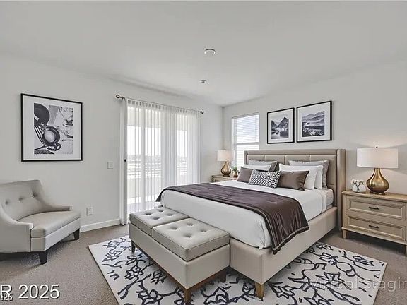 1 year old only LIKE NEW! This stunning 4-bedroom, 3-bathroom home with a 2-car garage offers breathtaking views of the Las Vegas Strip. The open floor plan features soaring 10-foot ceilings downstairs and 9-foot ceilings upstairs, luxury grey cabinets, and white quartz countertops. Brand New vinyl flooring throughout 1st floor and new kitchen backsplash. Enjoy upgraded sliding doors—an 8x8 downstairs. With one bedroom and a full bath on the first floor, this home is conveniently located near Red Rock, Downtown Summerlin, and major freeways. Don’t miss out—schedule a tour today!