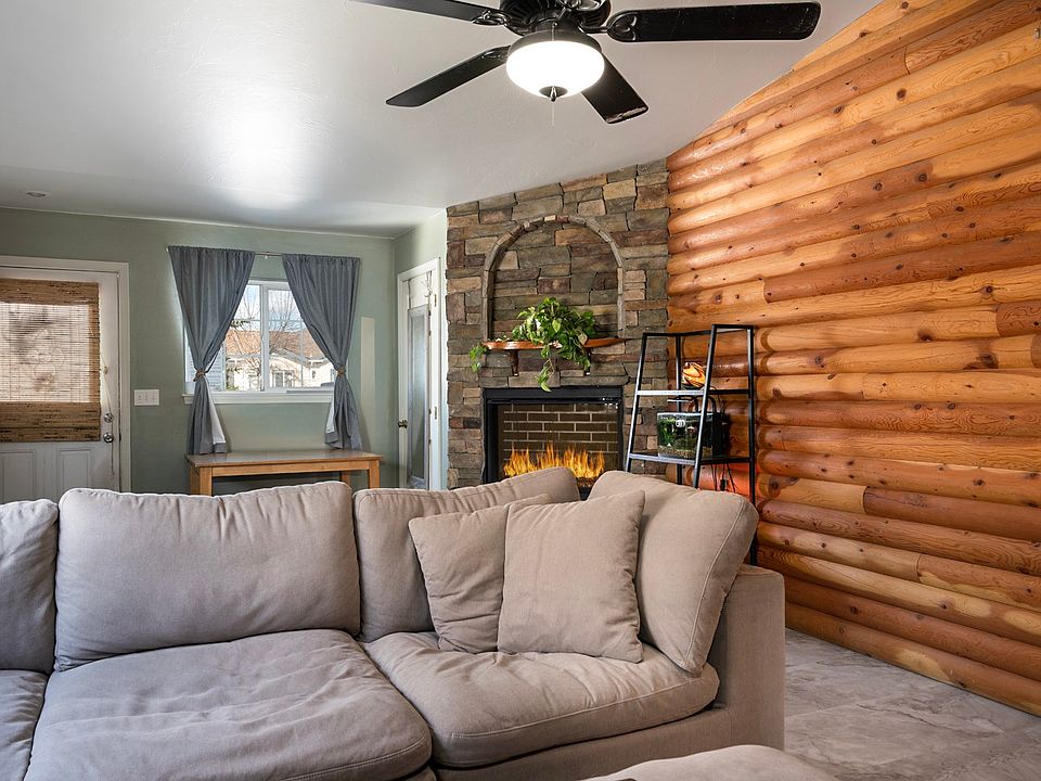 One level living! 3 bedroom 2 bath home with privacy fenced rear yard that backs up (with private gate) to 15 acre school soccer field for an even larger yard benefit and views. Convenient location near schools, shopping, recreation and more. Attached single car garage with easy entry directly into kitchen. Living room has faux log wall accent with electric fireplace and custom stone face. The sale includes a reverse osmosis water softener, water purifier, garage door opener, chicken coop, Ring doorbell, concrete patio off rear hallway door and extra sliding rear door from primary bedroom, hops plant along with an established landscaped yard. Primary bedroom has walk-in closet. High speed internet via Spectrum. Pets in home. Owner to be there with showings.