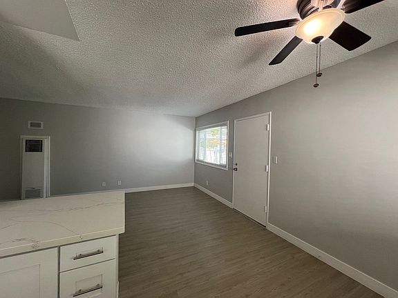 Ceiling fanNew vinyl planking floorsSmall outdoor spaceMirrored closet doorsBrand new kitchen countertops