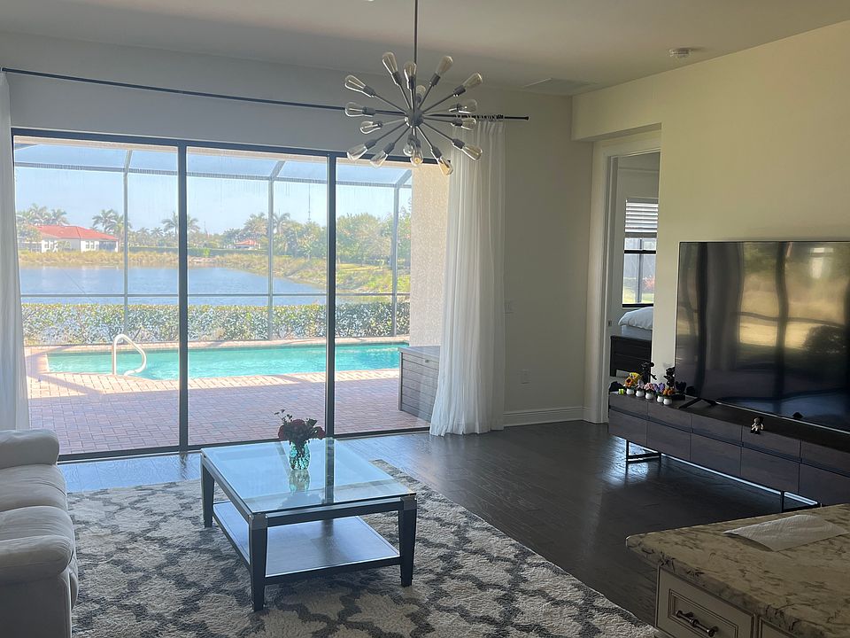 Private screened poolStunning lake viewsSpacious lanaiMarble countertopsModern open kitchenStainless steel appliances