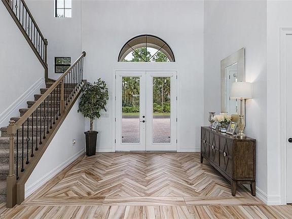 PERFECT FOR ENTERTAINING. Please view the cinematic video tour! This stunning home is situated on an oversize lot with stunning lake view in Mockingbird Crossings and was built in 2017 with many upgrades of unique architectural details, and luxury finishes in 2019 including a fully renovated dream pool and spa. There is a preserve in front of the home for the ultimate privacy. The home encompasses 5,350 square feet under air with a total of 5 bedrooms, 6 full baths, and a 4-car garage. The first floor has an eat-in gourmet kitchen with cambria annica counter tops, breakfast nook, gracious living room that has corner glass doors, dining room, family room, laundry room, master bedroom and master bath. Ascend the staircase to the second level featuring a huge game room, 4 on-suite bedrooms with walk-in closets, and an office that opens to a large outdoor terrace with lake views. The magnificent outdoor living space is a luxurious tropical oasis, complete with pool and spa shining bright with lights and water features, covered seating, built in kitchen. This is the perfect home for entertaining family cookouts and large formal events!