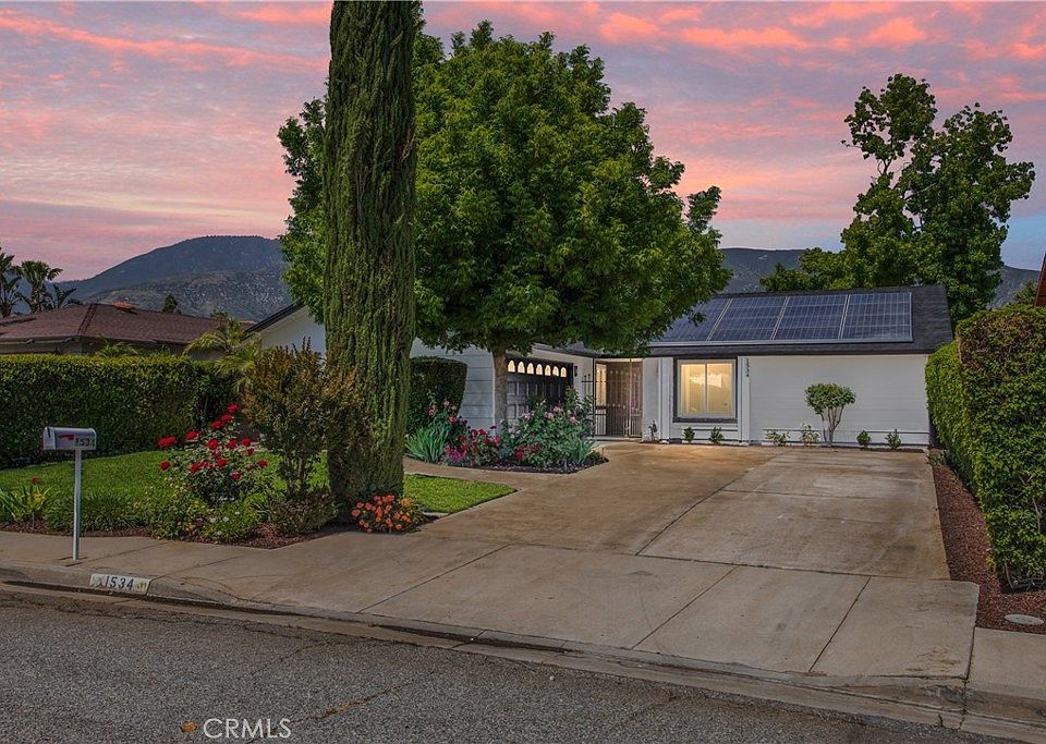 Welcome home to your spacious 3 bedroom, 2 bath home, with a fully LANDSCAPED front/backyard as well as picturesque mountain views! There is plenty of room in your new backyard for entertaining! This home boasts many upgrades: freshly painted walls, upgraded lighting, quartz countertops, plenty of kitchen cabinets, new flooring, newer windows and PAID-OFF SOLAR PANELS! This home is conveniently located near the I-215 Freeway, nearby shopping, dining, and neighboring California State University, San Bernardino. A MUST SEE!