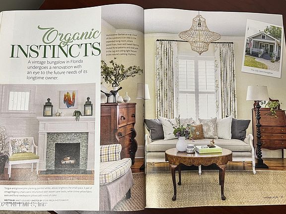 This spectacularly renovated vintage bungalow is so amazing it was featured in Cottage Style magazine! With the exception of the 100-year-old pine flooring, every inch and system has been meticulously replaced and designed with ease of accessibility in mind: open, airy floor plan, widened doorways, paver walkway from street leading to ramp on back deck and into the home, and even a large, curbless shower in primary bath! Numerous windows with plantation shutters bathe every room with natural light, especially in the large living room with a fireplace flanked by original 1924 windows! Open dining room leads to stunning kitchen with cool gray, soft-close cabinetry, stainless steel appliances, solid surface counters and subway tile backsplash!  Enjoy morning coffee on the large deck overlooking the private, serene backyard, and bring plenty of rocking chairs for relaxing on the front porch! Everything about this beautiful cottage exudes incredible charm and character!