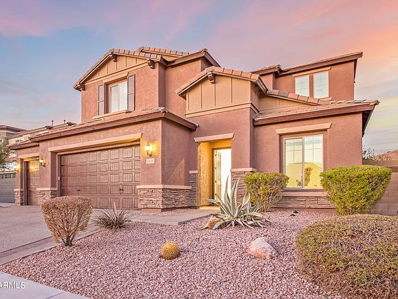 Amazing 6 bed,4.5 bath + den home located in highly sought after Fireside at Norterra Community. 53' heated pool & spa with custom stone water feature & gas fire bowls, fruit trees, N/S orientation with mountain views, Outdoor kitchen area with built in bbq, Pavers and travertine hardscape and synthetic grass.New interior paint, new carpet & tile flooring in main areas.This home is an entertainers dream, inside & out. The gourmet kitchen has a gas cooktop with combo wall mounted microwave & oven, large island & granite counter tops w/pendant lights opening to a spacious family room. Downstairs Primary, guest bedroom with full bathroom plus powder room.Upstairs loft area plus 4 additional bedrooms. The community is amazing w/ 2 pools, play ground, basketball ct,grass areas & nearby school.