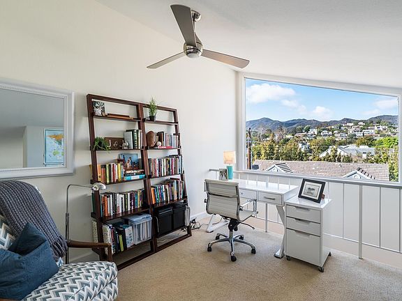 TOTALLY REMODELED AND SUNDRENCHED PENTHOUSE 2BR 2BA + LOFT WITH AIRY CATHEDRAL CEILINGS. BEAUTIFUL MOUNTAIN VIEWS FROM ALL ROOMS. Loft feels like a third room, perfect for office, playroom, guest stay, or home gym. Brazilian cherry wood floors, Carrera marble counter tops and high-end tile floors in both bathrooms. Updated kitchen w/ stainless steel appliances, breakfast bar, and recessed lighting. Master bedroom has two ample closets, including walk-in, plus large attic storage. Two private patios and side-by-side garage parking. Elegant French door entry opens into lovely outdoor hallway, with peak-a-boo ocean view. Enjoy living in this well maintained, quiet complex with heated pool. Located in the heart of the Palisades Village, steps from weekly Farmers' Market, boutique movie theater, restaurants, grocery and more. This unit usually leases before it makes it to listing, so IT WILL GO FAST. Available now. First showings on 10/21.