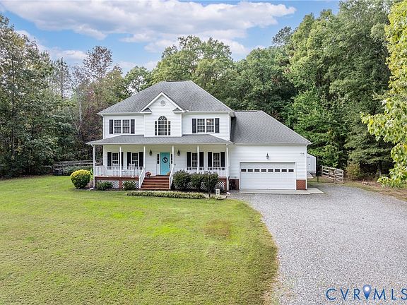 Welcome to 15341 Goshen Road, a beautifully maintained 4-bedroom, 2.5-bath Colonial home nestled on a serene 2.43-acre lot surrounded by nature. Built in 2005, this spacious 2,766 sq. ft. residence perfectly blends country tranquility with modern convenience located just minutes from Montpelier shops and a short 20-minute drive to Ashland, Glen Allen, and Short Pump. Step inside to find soaring 9-foot ceilings, elegant hardwood floors, and an open layout designed for both comfort and entertaining. The formal dining room flows effortlessly into a bright, airy kitchen featuring solid-surface countertops, an island, pantry, and breakfast nook. The adjoining family room centers around a cozy gas fireplace, perfect for relaxing evenings. Upstairs, the primary suite offers a spa-like escape with a jetted tub, double vanity, and walk-in closet. Three additional bedrooms provide generous space for family, guests, or a home office. Outdoor living shines here and enjoy mornings on the covered front porch or host gatherings on the spacious composite rear deck overlooking a fenced backyard ideal for kids, pets, and entertaining. The property also includes a two-car finished garage, gravel driveway, and detached storage shed. Experience peaceful rural living without sacrificing convenience, this property offers the best of both worlds. Schedule your tour today and fall in love with this move-in-ready home!
