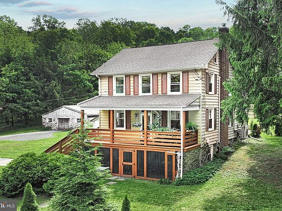 This idyllic turn of the century farm house and 7+ acre homestead is a hidden gem set in picturesque rural southern York Co., just over the PA/MD line. Lovingly maintained and enhanced over the years, you will find that traditional character and natural elements are perfectly sown with the comforts of modern living to create a perfect sanctuary for nature and humans alike. The 3-story home welcomes visitors with a cheerful covered front porch entry, opening into a broad living room with charming built-in corner hutch, original hardwood floors and archway into the generous formal dining room. The modern kitchen is equipped with ceramic tile floors, updated cabinetry and countertops, and an adjacent sun room or breakfast room with side door to the porch, fenced play area and fantastic flagstone patio with electric awning ready for your summer gatherings. Upstairs, 3 accommodating bedrooms are served by a renovated bath featuring updated vanity, handsome LVP flooring, and a porcelain tub with tile shower surround and spa shower fixtures. Stairs to the insulated walk-up attic provide easy access to all your storage needs. Downstairs, the full basement includes additional storage, a clean utility room with laundry, sink, handy quarter bath, and walk-out exit to the enclosed lower porch. Numerous improvements such as replacement windows, 200 amp electric service, ductless mini-splits, new architectural roof in 2006 and new well in 2002 offer peace of mind and optimal enjoyment. Outside, lush grounds have been cultivated with native pollinator gardens, flowering trees, a cottage garden with blueberry and raspberry bushes, strawberry and asparagus beds, potting shed and a hoop greenhouse to enjoy your homegrown crops year-round. There is also a stone workshop/garage with electric and plank floors, an additional shed and acres of land to explore. Nature lovers will be delighted to watch the barred owls, hawks and phoebes, turkeys and deer, among countless other species that make their home in the many mature trees and surrounding woods, as well as the diverse plant life, which documents each passing season in their colorful blooms. There is even a massive yew tree that may be one of the largest specimens in the area! You could spend a lifetime discovering and further enriching all the treasures this wonderful property has to offer. Serenity awaits!