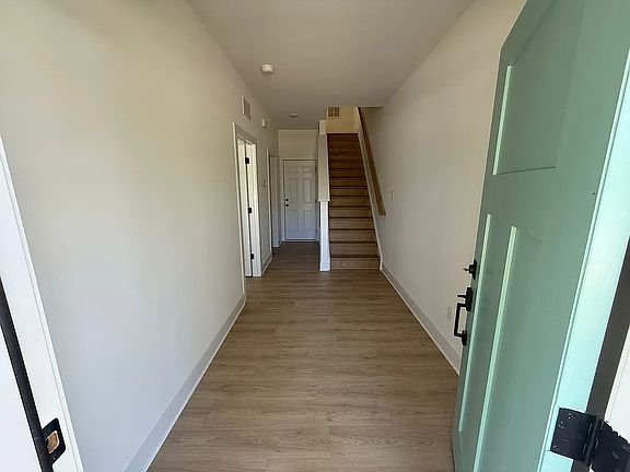 This thoughtfully designed home offers four spacious bedrooms and 3.5 luxurious bathrooms, elegant oak stairs, sleek laminate flooring, a rear-entry 2-car garage, an energy-efficient tankless water heater, a durable composite deck, and stylish vinyl siding. Discover a versatile first-floor bedroom with a full bath perfect for guests, a home office, or a private retreat. The second floor is an entertainer's paradise with a wide-open layout featuring a sprawling great room, dining area, and a convenient powder room. The centerpiece is the show-stopping kitchen, boasting quartz countertops, ceramic tile backsplash, stainless steel appliances, an electric stovetop, and an oversized island perfect for gatherings. Upstairs, the third floor welcomes you with a serene primary suite showcasing dual walk-in closets and a spa-like ensuite with a spacious ceramic tile shower and double vanity. Two additional bedrooms, another full bathroom, and a conveniently located laundry room complete the upper level. Live the good life with access to resort-style amenities including a state-of-the-art clubhouse, sparkling outdoor pool, dog park, pickleball courts, playgrounds, parks, sidewalks, and a community garden.