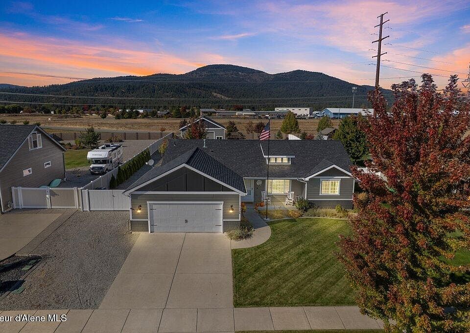 Come and enjoy the Radiant Lake lifestyle in this wonderful, one-level home with a SHOP!!!! Radiant Lake Neighborhood is a Gated Community offering parks, a basketball court, volleyball, swimming, a beach, paddle boarding, paddle boating, kayaking, ice skating and so many other activities. This home features 3 beds, 2 baths, and a great room concept with spacious kitchen with new appliances refrigerator, oven and dishwasher. Brand new flooring throughout. Gas Heat and central A/C. Outside, enjoy the half acre of fenced yard, recently new exterior painted, spacious deck, sprinkler system, raised garden beds and wonderful Rathdrum Mountain views. Enjoy the 30x40 insulated and heated SHOP with 220 power!!! Don't miss out on all of what this gated community has to offer.