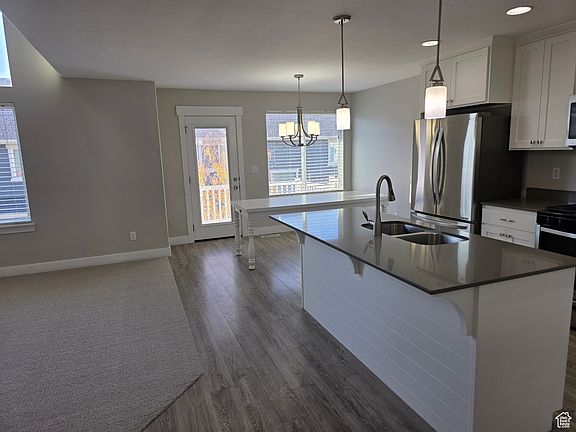 Immaculate Bluffdale Townhome Move-In Ready! This beautifully maintained 4-bedroom, 4-bathroom townhome offers a convenience, comfort and turn-key appeal. Inside, you'll find fresh paint, brand-new carpet and a 100% finished walk-out basement that expands your living space in style. The community adds real lifestyle perks, with access to a clubhouse and playground, and the location can't be beat: easy freeway access and right near the vibrant new development "The Point," bringing dining, shopping and entertainment close to home. Everything you need is included-washer/dryer and refrigerator are already in place-so you can move in with ease and focus on enjoying your new home. Buyer/Buyers Agent to verify all info. Agent/Owner