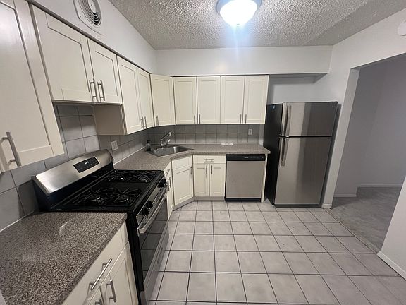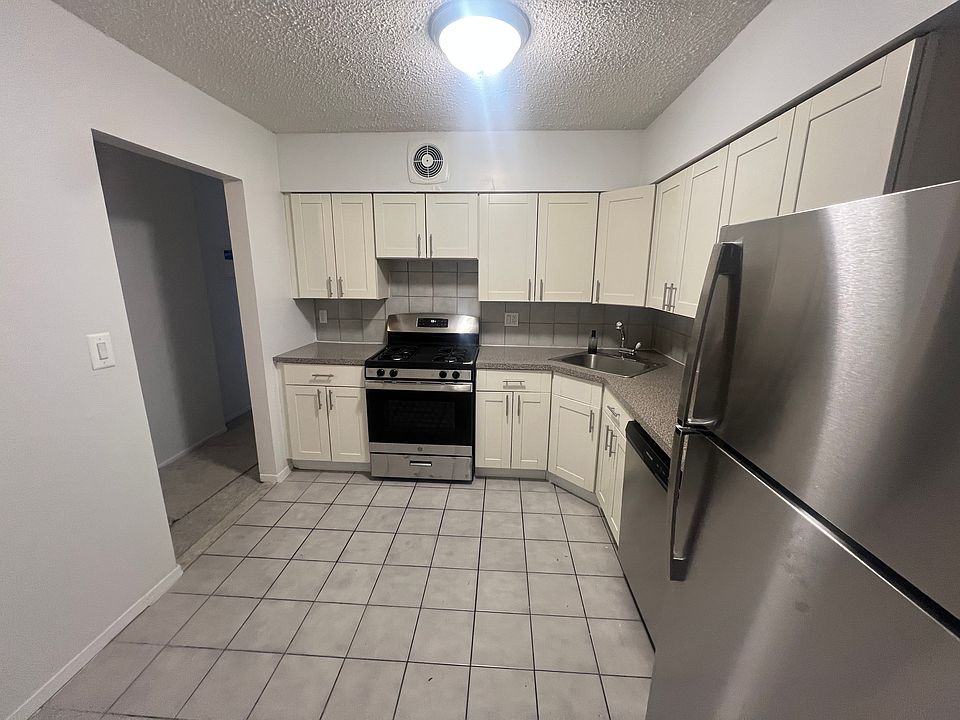 Kitchen recently renovated with new cabinets, fixtures, and stainless steel appliances.