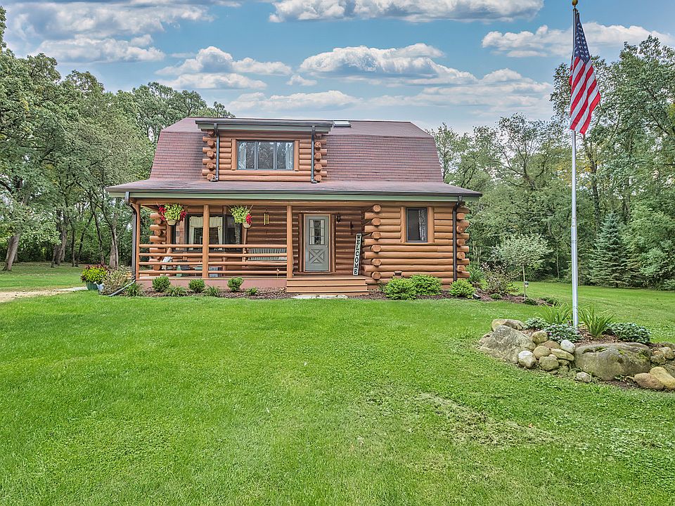 ENJOY PEACE AND SERENITY IN THIS CHARMING LOG HOME! RELAX WATCHING SUNSETS FROM THE FRONT PORCH SWING OR BY READING A BOOK IN THE COZY FOUR SEASON PORCH SURROUNDED BY 5 ACRES OF NATURE AND TREES. INSIDE YOU WILL FIND AN UPDATED EAT IN KITCHEN WITH GRANITE COUNTERTOPS, A HUGE GREAT ROOM WITH WOOD BURNING FIREPLACE, FIRST FLOOR OFFICE/POTENTIAL BEDROOM AND LAUNDRY ROOM WITH VINYL PLANK FLOORING THROUGHOUT. UPSTAIRS BOASTS TWO LARGE BEDROOMS WITH DEEP CLOSETS AND NEW CARPETING. THE FULL BASEMENT HAS A BONUS ROOM/POTENTIAL 3RD BEDROOM, TONS OF STORAGE, AND IS JUST WAITING FOR YOUR FINISHING TOUCHES! THERE IS PLENTY OF SPACE FOR CARS AND TOYS IN THE DETACHED 5 CAR GARAGE WITH TONS OF STORAGE, PLUS A HUGE SHED AND OUTBUILDING. TAKE A LOOK AT THIS GORGEOUS COUNTRY HOME TODAY!
