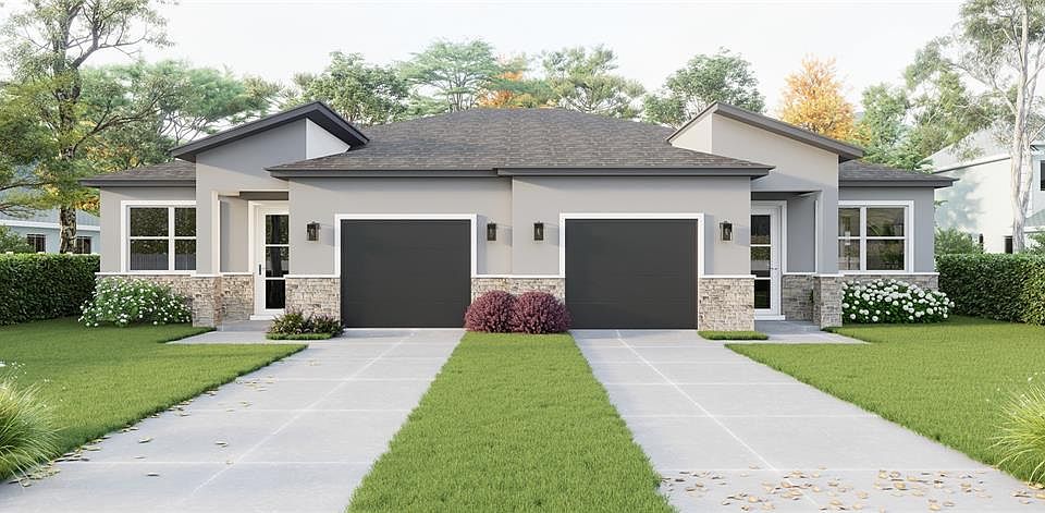 One or more photo(s) has been virtually staged. Live smart and earn from day one with this brand-new Sky Homes duplex ideal for investors renting both sides or for an owner occupying one residence and leasing the other. Each unit showcases Sky Homes’ signature quality: a one-car garage, covered lanai, open-concept living with high ceilings, luxury vinyl plank flooring, and modern baths featuring tiled surrounds, modern mirrors, and hardware. The kitchens are built for style and function with quartz countertops, an island with seating, and a seamless view into the living room for effortless entertaining. With instant equity and income potential, a builder warranty, and a prime Ocala location near I-75, shopping, and professional parks, this turn-key duplex blends modern finishes with smart functionality ready to perform from closing.