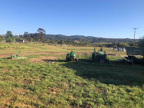 Country living and wide open spaces! This 4.89 acre ranch is nearly completely level and includes an approximately 60-80 foot well with a recently replaced pump. Surrounded by vineyards and a palm tree nursery. Some pipe corals in the back with a rickety barn and a couple other outbuildings/sheds. The pasture is mostly fenced. The house is a little bit of a fixer upper. There's a wood burning fireplace with an pot stove insert. The kitchen and bathrooms were updated with quartz countertops and new cabinetry. There is vinyl plank flooring throughout. Primary ensuite with walk-in shower. Hall bath has tub and shower combo. There's large family room/game room with a wet bar. The indoor laundry room is just off the kitchen. The roof is about 10 years old and the water heater was replaced with a tankless system. The whole house is electric. However, there is a solar system with a power purchase agreement. The detached garage was originally built to accomodate a semi truck cab and is very tall. There are RV hookups and plenty of space to park. Driveway wraps around the back of the house. There's a fenced in backyard with a covered patio. Seller is a licensed CA real estate agent.