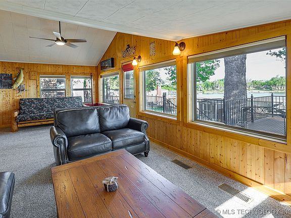 This lakefront retreat with a gorgeous view of Sailboat Bridge has everything you need! Being sold fully furnished, it has brought in significant rental income over the last two years. Whether using as a short term rental or for personal use, recent updates and meticulous maintenance should keep it issue free for years! A new heat and air system, hot water tank, washer, dryer and stove were all just installed. Large 3-car garage to hold all the toys. Outside a large composite deck with gorgeous water views leads to two walkways, one to an enclosed garage dock with a 3500 pound lift and the second to a 15 x 40 open dock with 9600 pound lift. Yard features a storage shed and fire pit and is fenced and cross fenced. Make plans to see it today! Flood insurance not required.